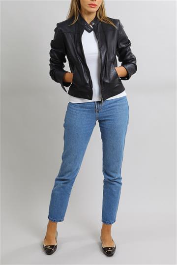- Jaqueta em couro liso e macio