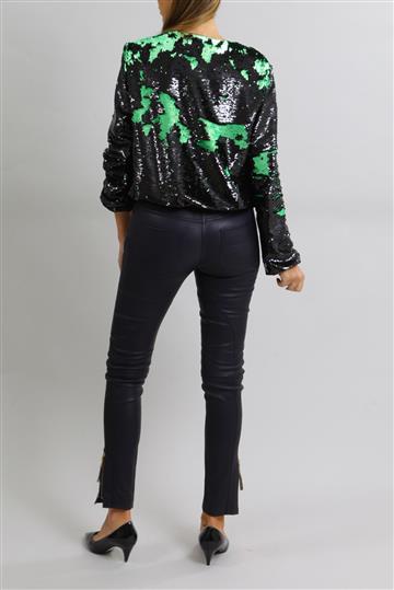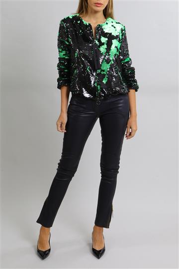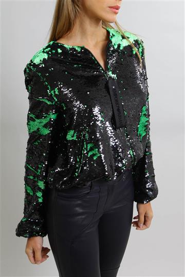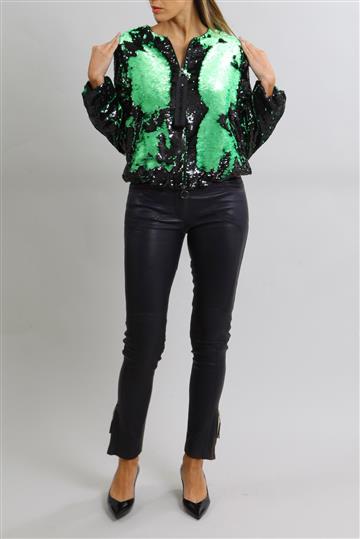 - Bomber em tecido leve e fluido inteiramente revestida por paetês reversíveis