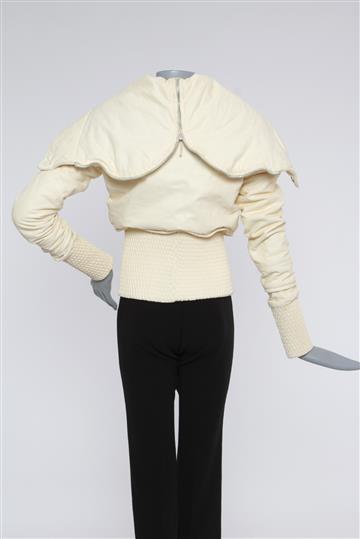 - Capuz superior amplo com zíper central aplicado