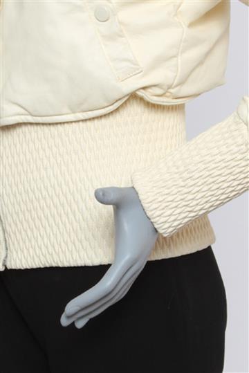 - Tramado texturizado com detalhes decorativos em alto relevo nos punhos e pala