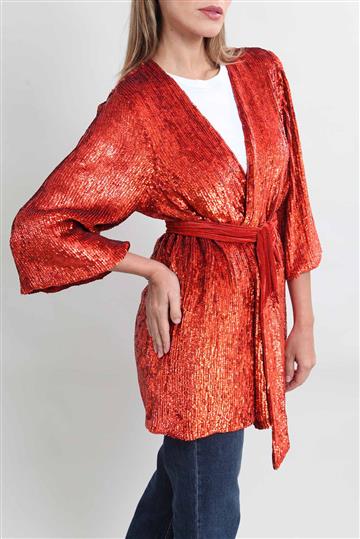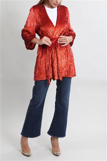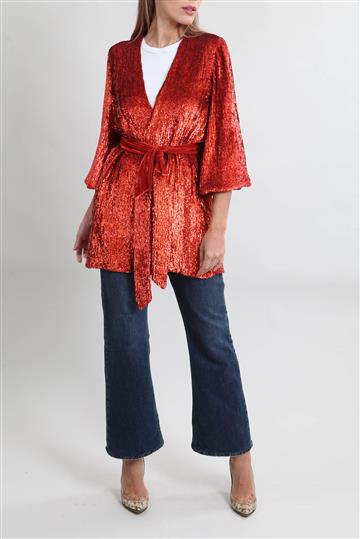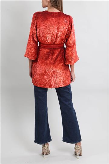 - Faixa central em veludo para amarração e melhor ajuste ao corpo