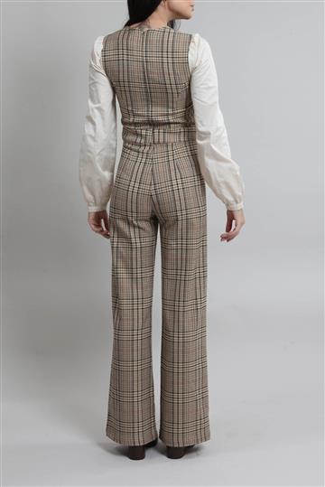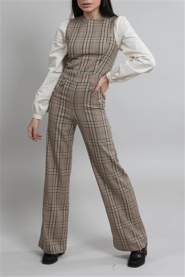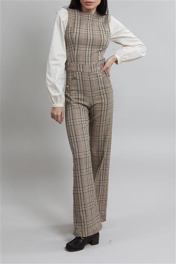 - Macacão em tecido à base de lã encorpado com detalhes em tricoline de algodão