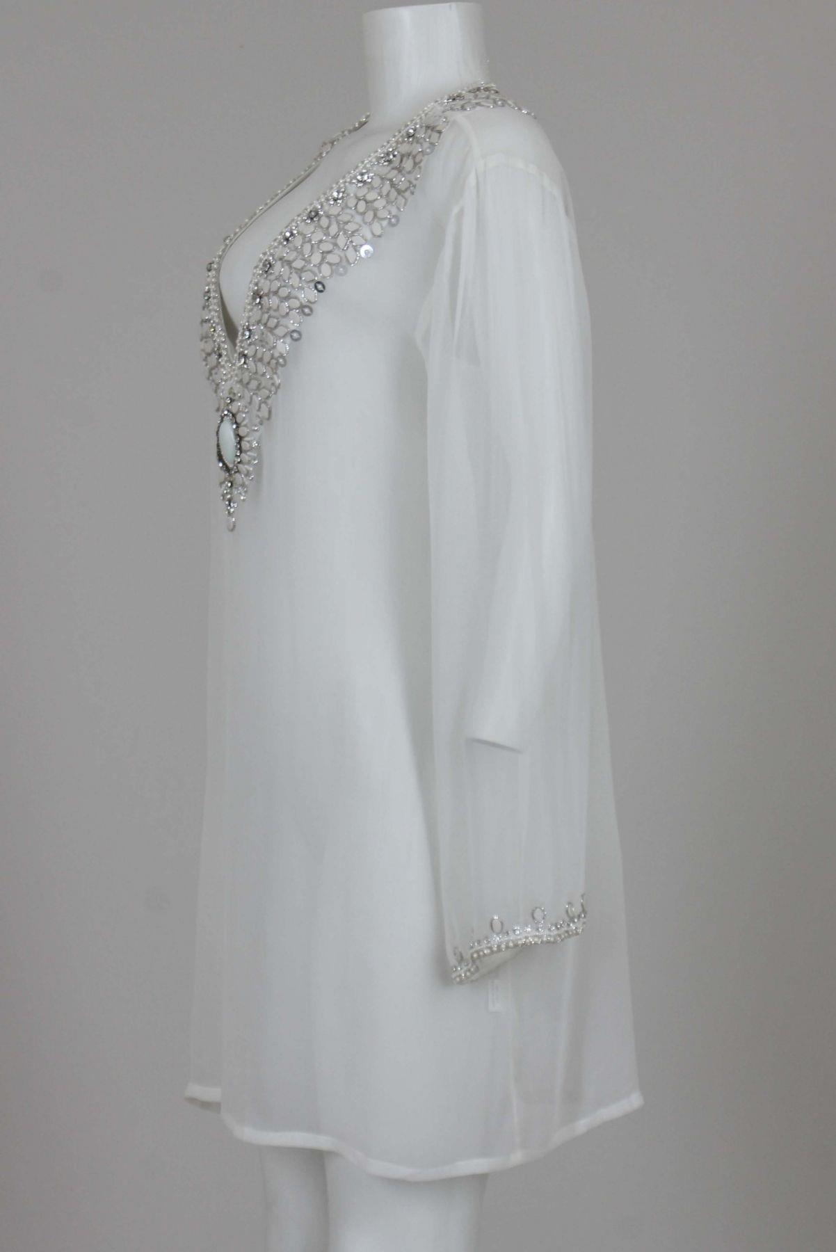 - Decote em 'V' com aplicacação de pedrarias decorativas