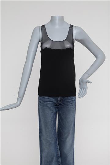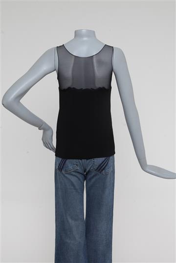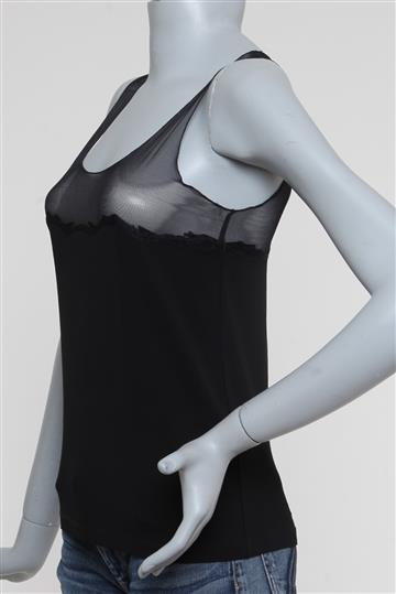 - Regata em malha com boa elasticidade à base de viscose com detalhes em tule
