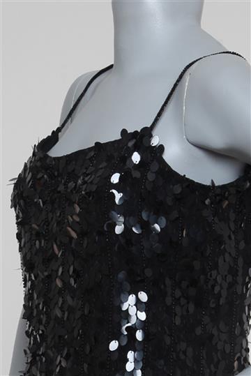 - Tramado ornamentado por miçangas e paetês ovais em ton sur ton