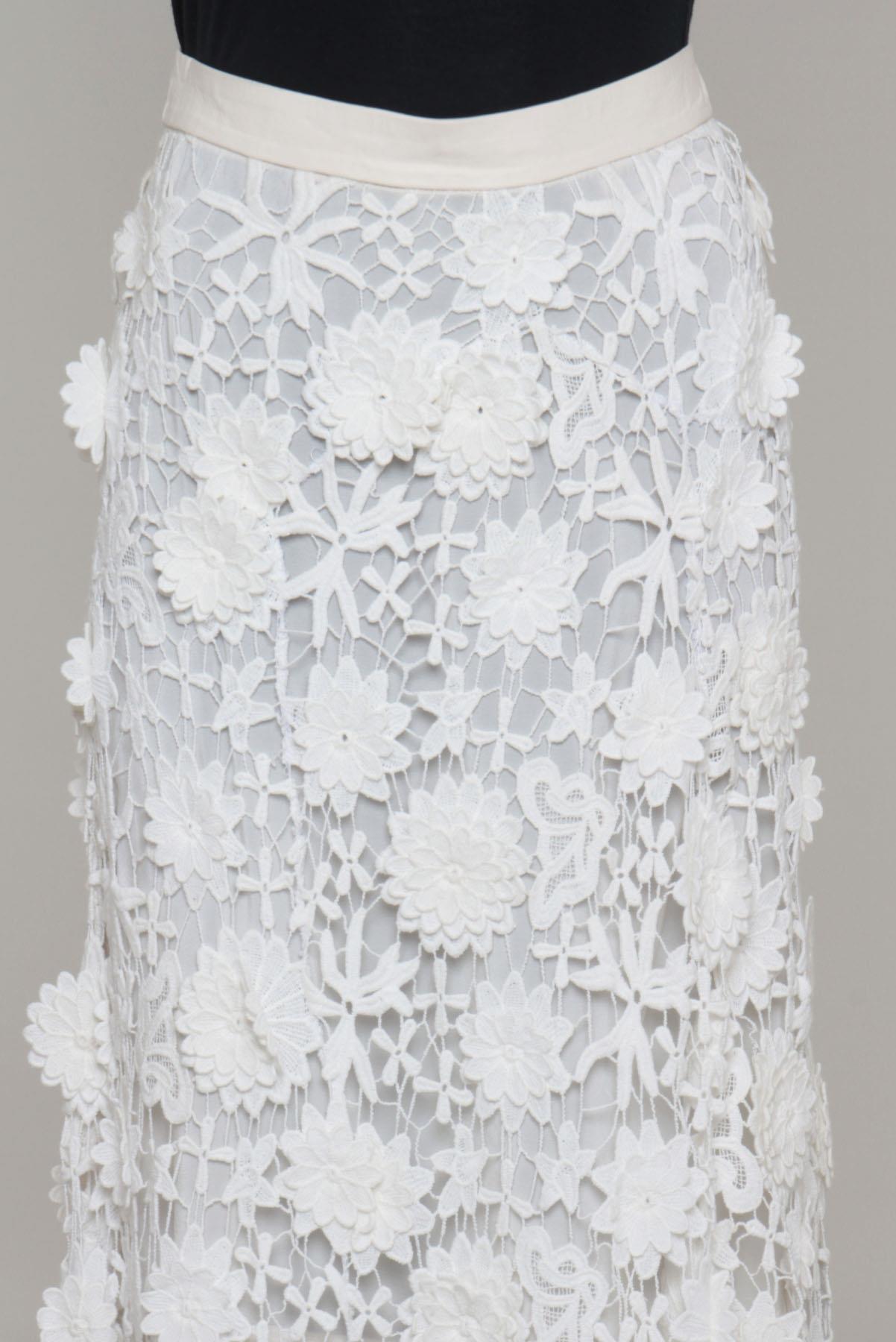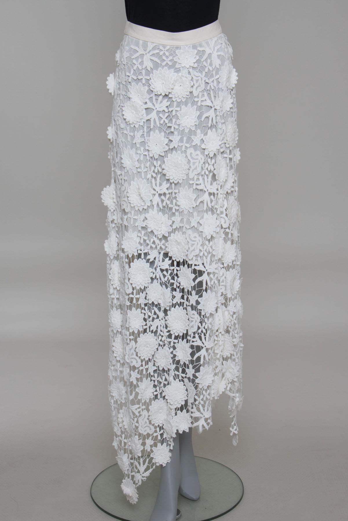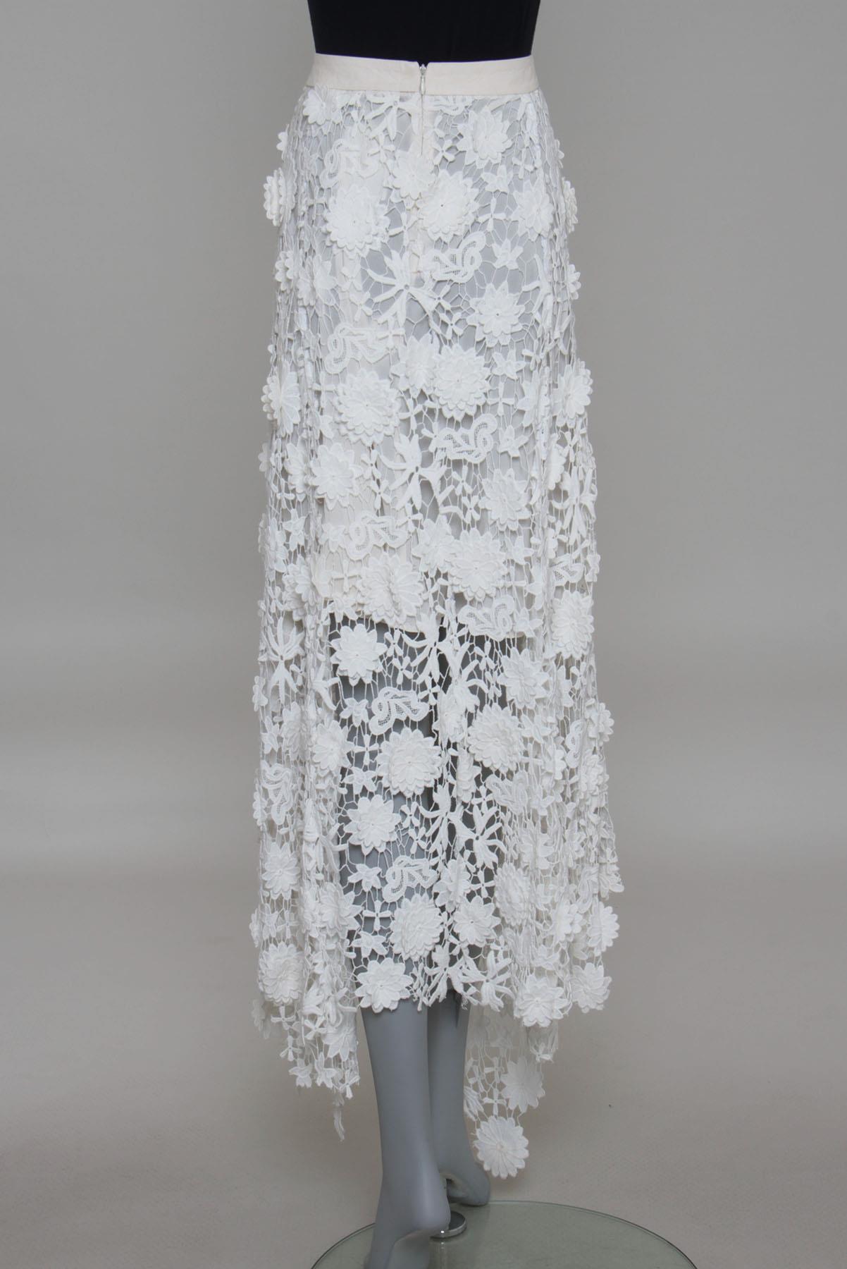 - Saia em renda com detalhes em couro