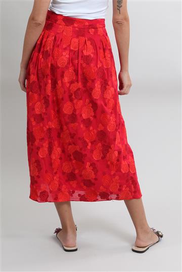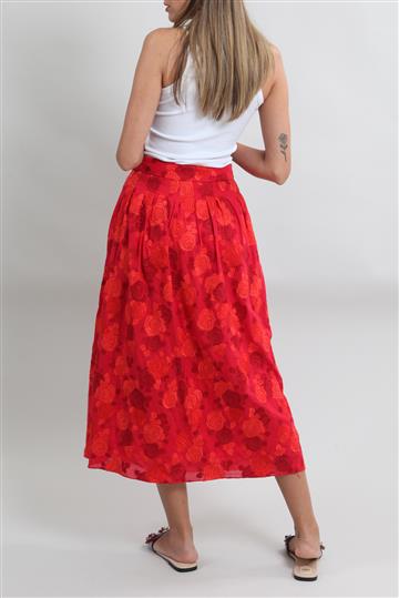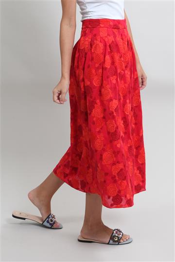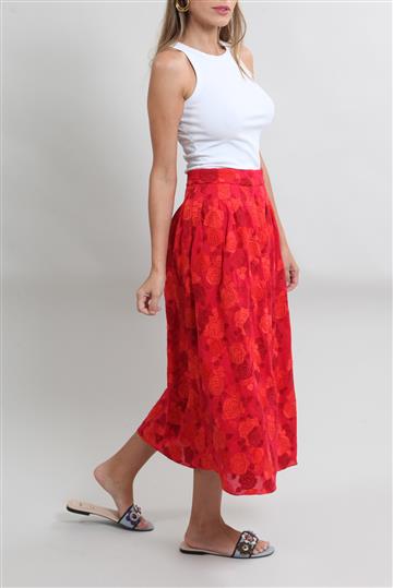 - Tramado ornamentado por bordados de temática floral com fios de lurex aplicados