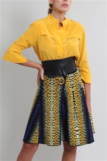 - Saia em tricot texturizado encorpado e com boa elasticidade