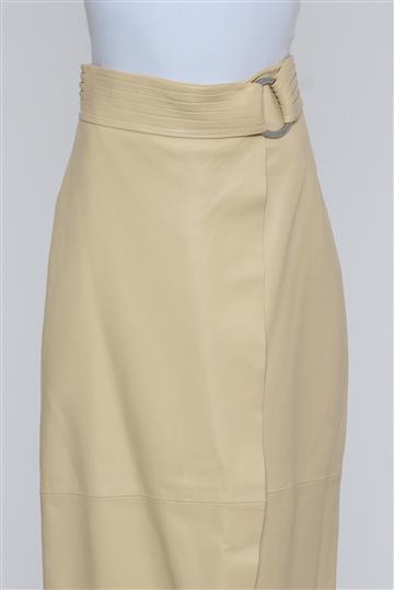 - Saia em couro texturizado e ligeiramente encorpado