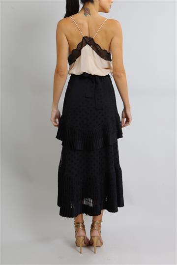 - Cintura alta com cós reto de espessura mediana e passantes aplicados