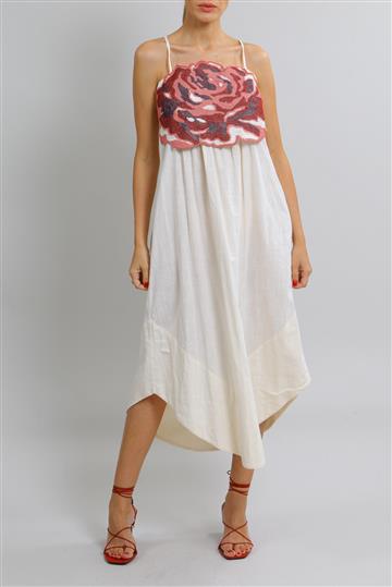 Vestido A. Niemeyer Linho Ponto Cruz Off-White