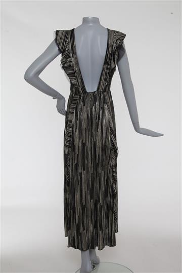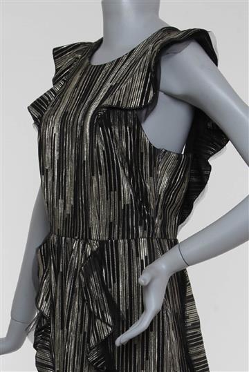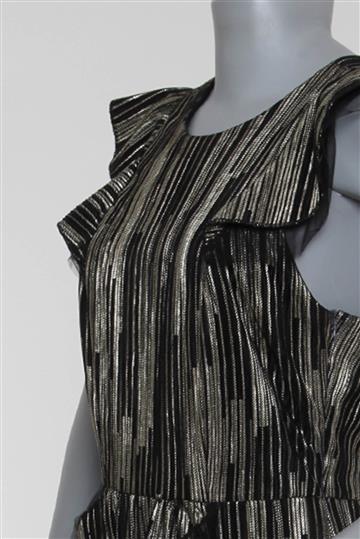 - Vestido em tecido leve e texturizado com brilho metálico