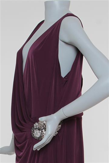 Vestido Achados da New Drapeado com Pedrarias Bordô