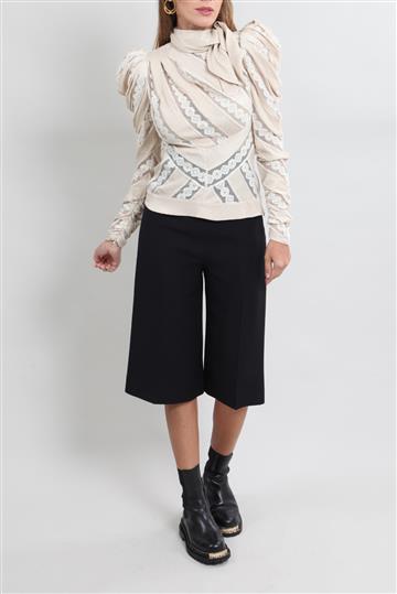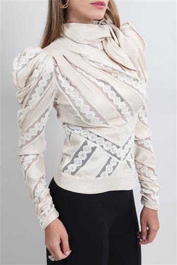 - Aplicação decorativa de miçangas metalizadas por toda a peça