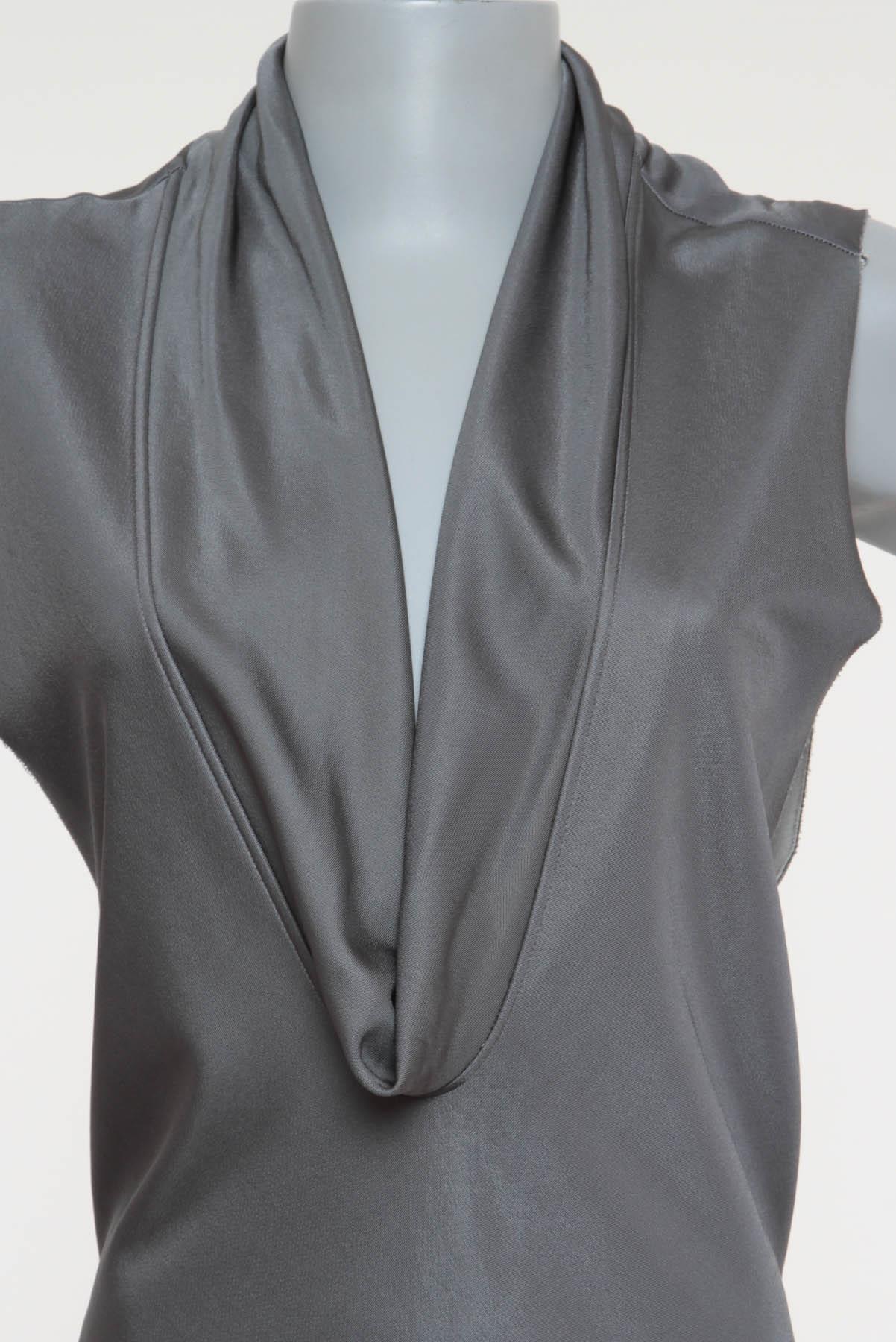 - Decote em 'V' alongado com gola drapeada