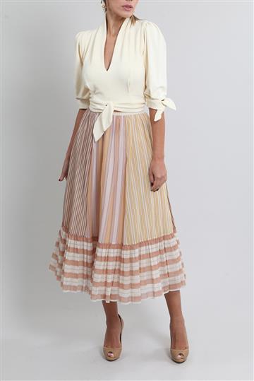 - Mangas 3/4 amplas e fluidas com fenda lateral alongada