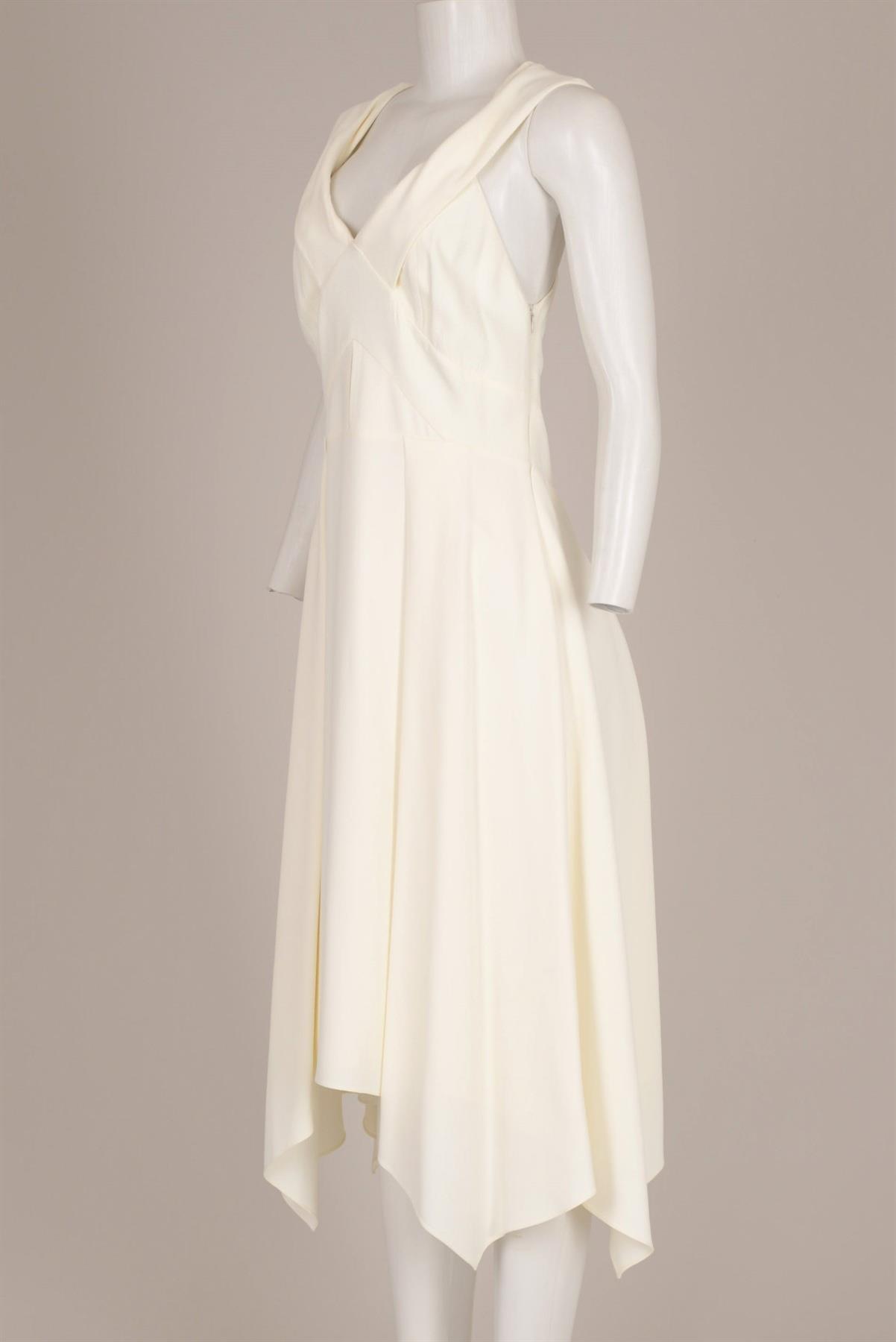 - Vestido crepe de seda- Midi- Sem mangas- Alças largas- Decote com detalhe cruzado- Pregas- Saia assimétrica- Fechamento po zíper invisível na lateral