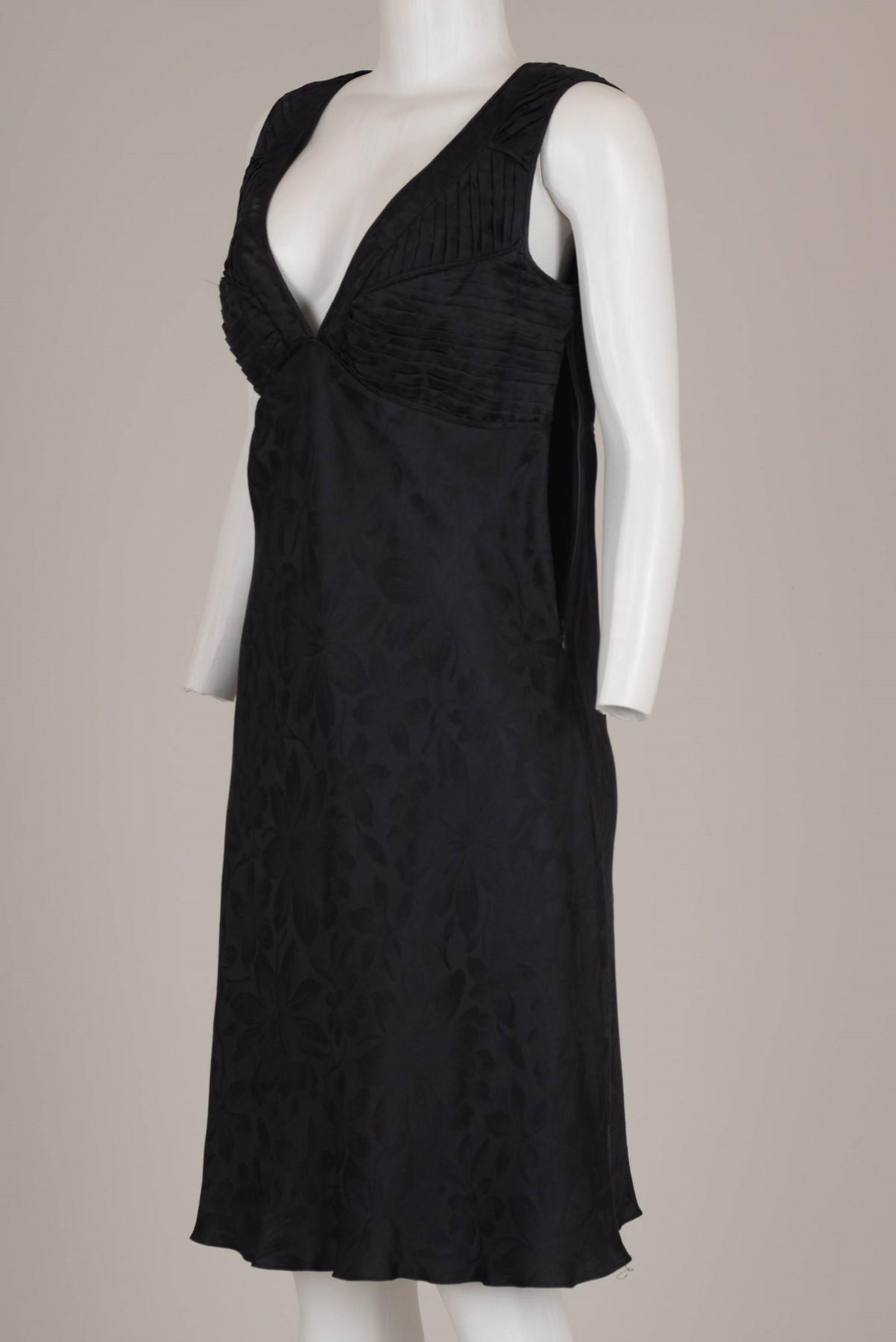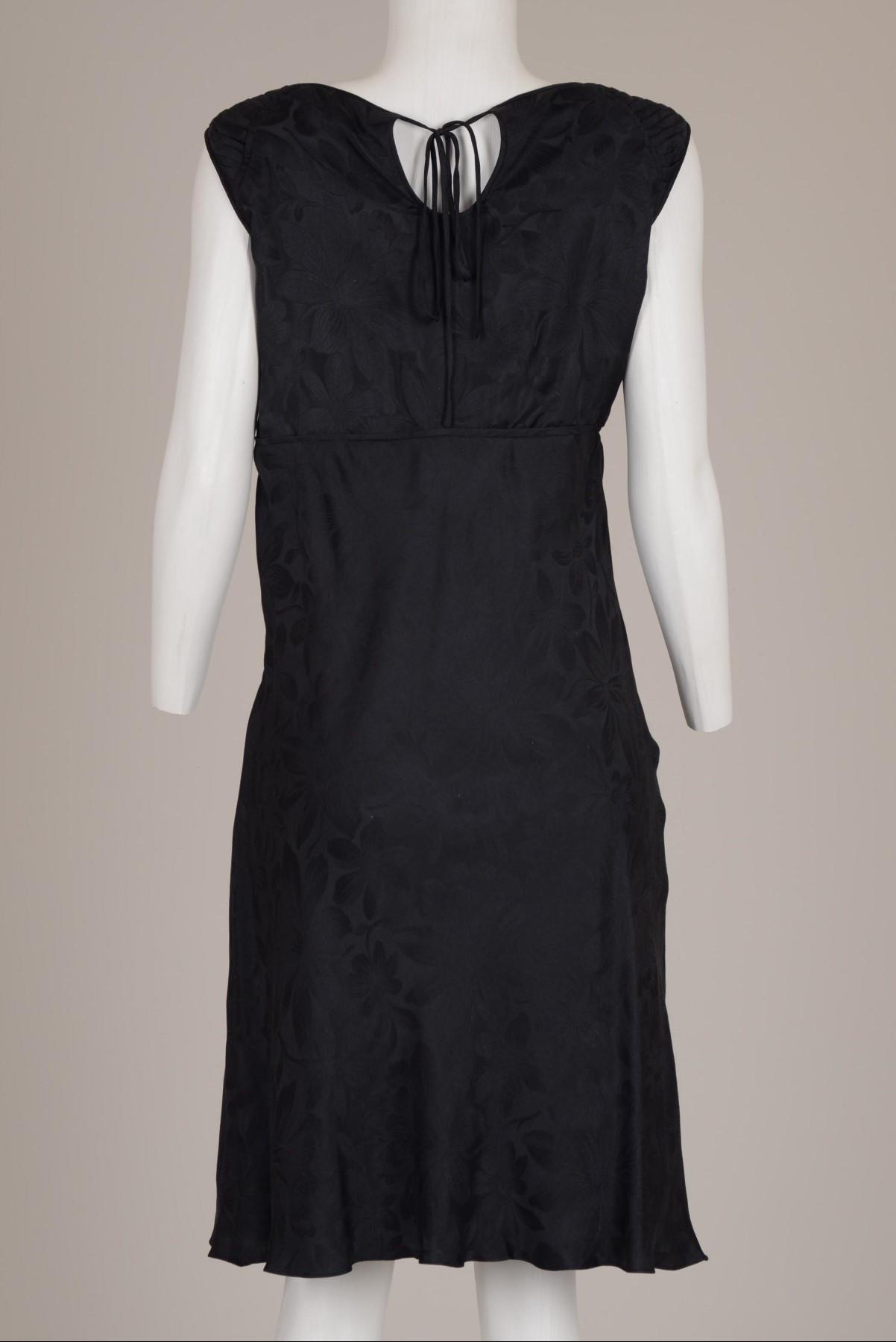 - Vestido de seda- Midi- Tecido adamascado- Decote em 'V'- Busto drapeado- Zíper invisível na lateral