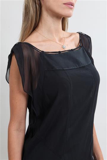 - Pequenos passantes aplicados aos decotes com tira decorativa central