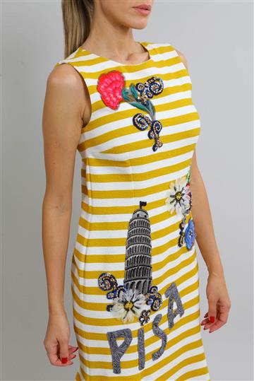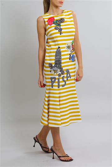 Vestido Dolce & Gabbana Midi Bordado Listrado