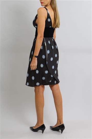 - Fechamento lateral por zíper aplicado e abotoamento delicado