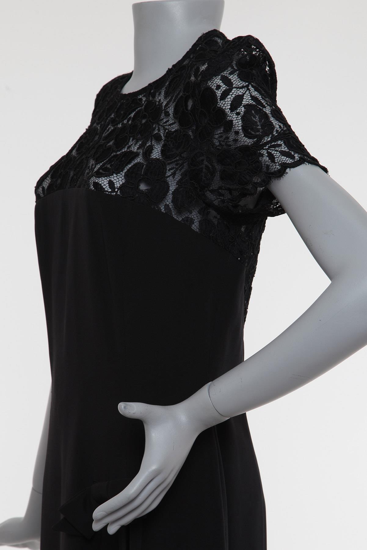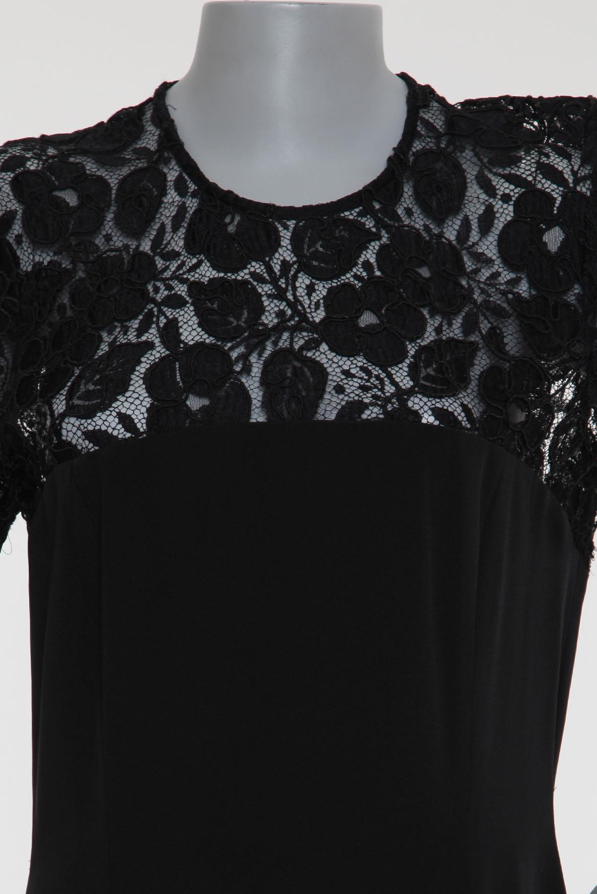 - Vestido em tecido encorpado estilo alfaiataria e renda