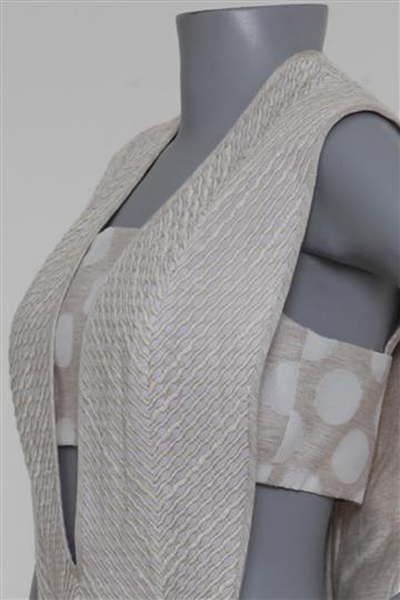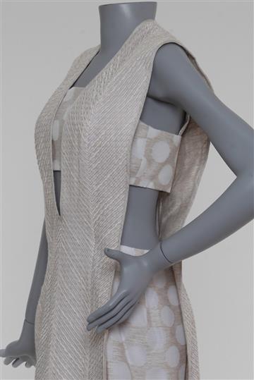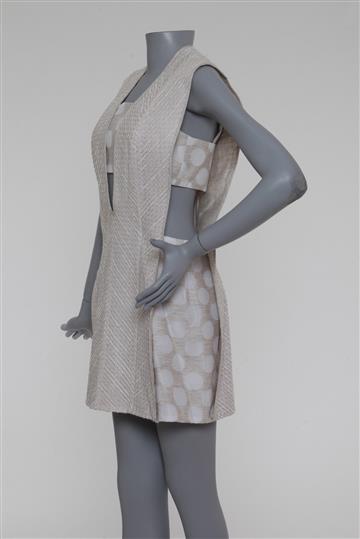 - Vestido em tecido encorpado e texturizado à base de linho