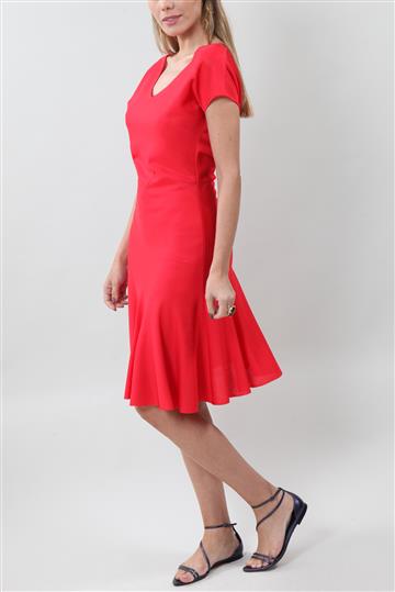 - Fechamento posterior por zíper aplicado e abotoamento delicado