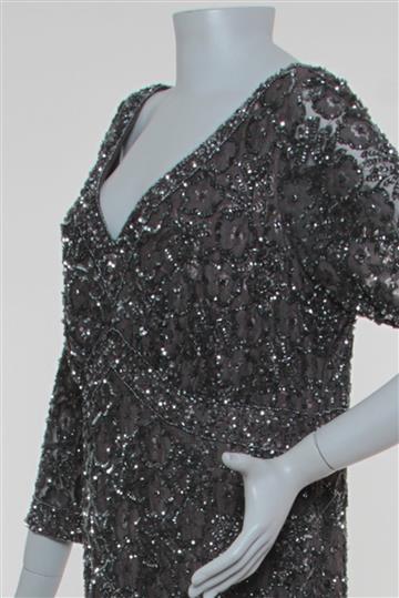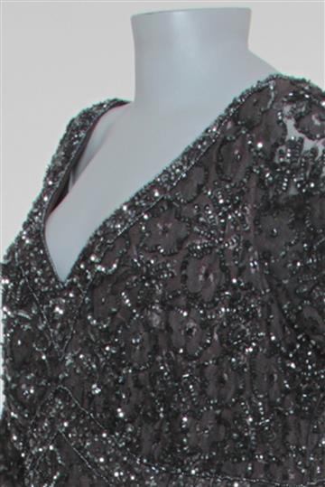 - Bordados decoarativos delicados por paetês e canutilhos