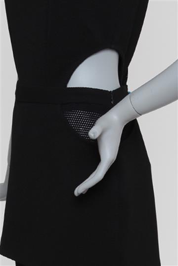 - Vestido em tecido texturizado e tecido telado com boa elasticidade