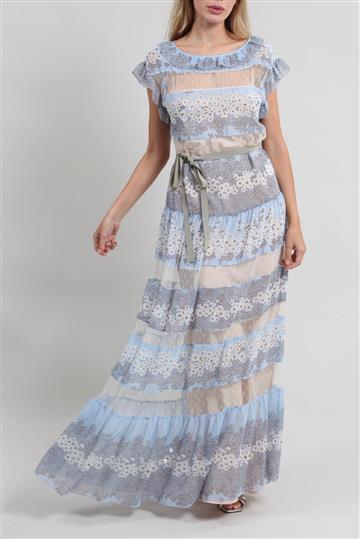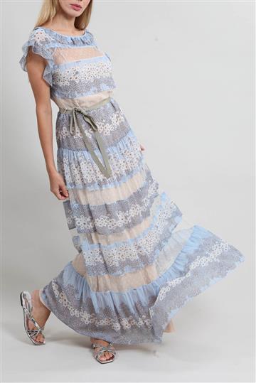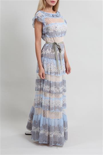 Vestido Red Valentino Seda e Tule Floral Azul