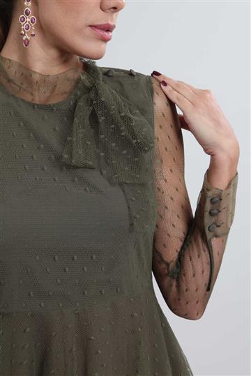 - Fechamento por abotoamento superior e zíper invisível lateral