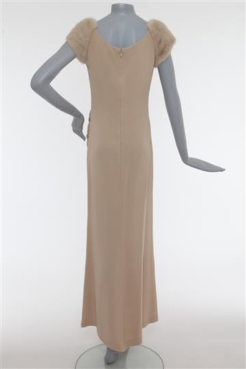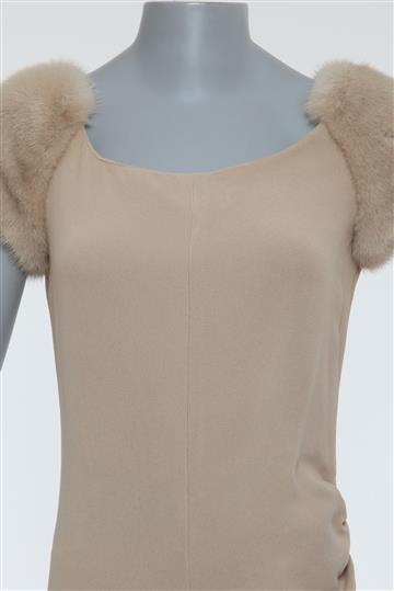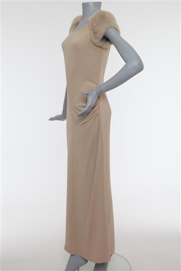 - Vestido em crepe com detalhes em pele