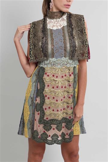 - Vestido em mix de rendas com base em tule