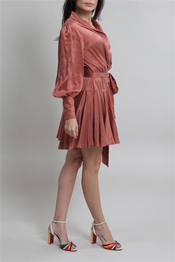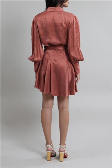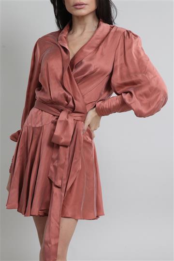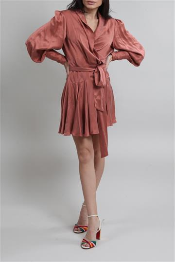 - Modelagem evasê acinturada e ajustada ao corpo estilo envelope