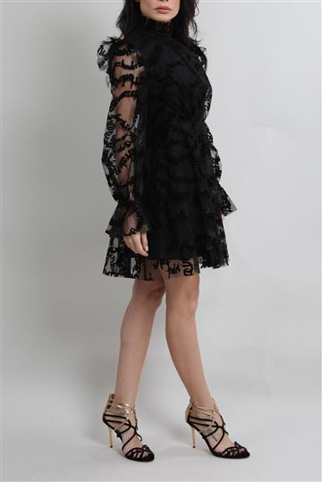 - Vestido em tule encorpado com detalhes em veludo