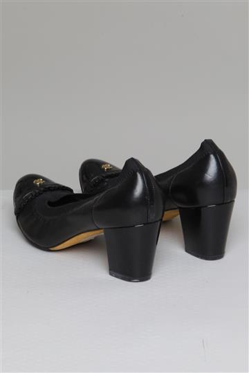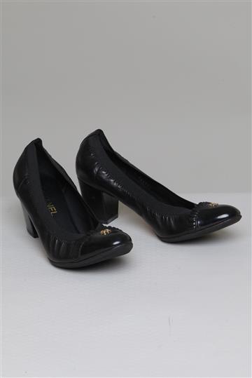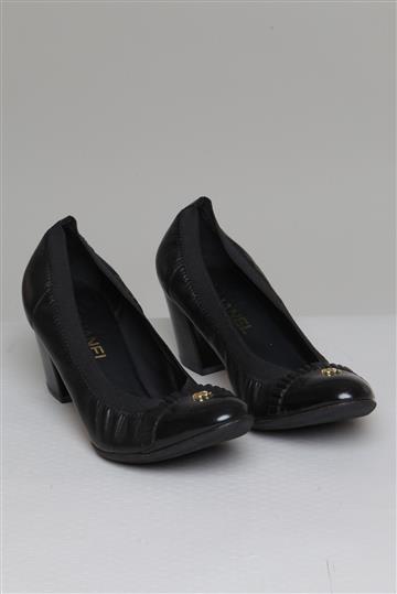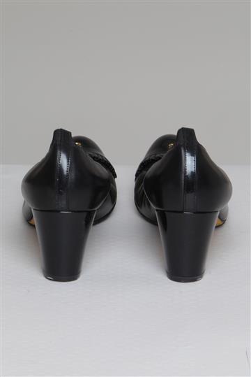 - Biqueira envernizada em couro com pequena logomarca metálica